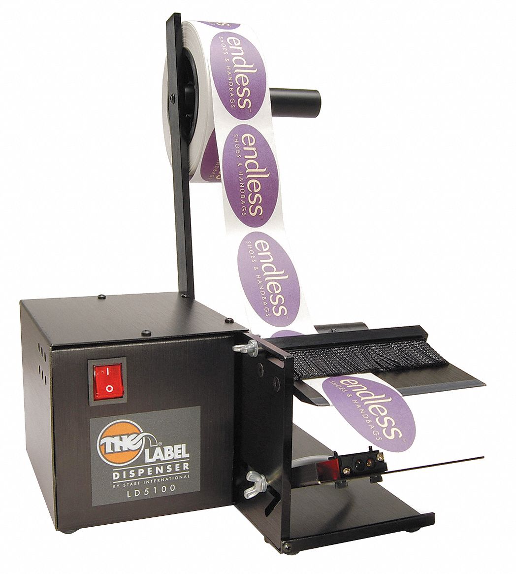 The start international ld5100 high speed electric label dispenser automatically peels and advances most types of labels and die cut parts made from paper polyester vinyl acetate foam foil and other materials.